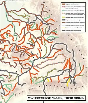 - Kiss, Lajos (1997). "Erdély vízneveinek rétegződése [The layers of the river names in Transylvania]". In Kovács, László; Veszprémy, László (eds.). Honfoglalás és nyelvészet [The "Conquest of Our County" and Linguistics]. Balassi Kiadó. pp. 199–210. ISBN 963-506-108-0.