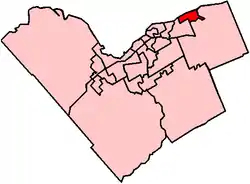 Orléans Ward (Ward 1) is a city ward in the city of Ottawa, Ontario, Canada, represented on Ottawa City Council. It was created before the 2000 Election when the area was amalgamated into the city of Ottawa. The ward covers much of the suburban community of Orleans in the east of the city. Previous to that, the ward existed in the Regional Municipality of Ottawa-Carleton Council. It contains the neighbourhoods of Convent Glen, Convent Glen South, Hiawatha Park, Orleans Wood, Riverglen, Queenswood Village, Chatelaine Village, River Walk, Queenswood Heights, Queenswood South, Fallingbrook and the eastern part of the Cardinal Creek neighbourhood (east of Trim Road). Not all of Orleans is in the Orléans Ward, as some of it is in Cumberland Ward and Innes Ward. It covers an area of 25.2 km2 (9.7 sq mi).