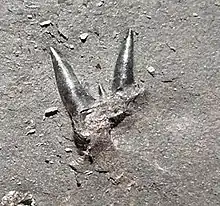Orthacanthus and Triodus have a predator-prey relationship where specifically there is predation of Orthacanthus on Triodus.[13] Cranial remains of specimens of both Orthacanthus and Triodus were from the Upper Carboniferous in Puertollano basin, Spain, and give evidence of this predator-prey relationship.[13] Numerous and well preserved cephalic elements of Triodus were associated with the cranial remains of Orthacanthus, and is explained by the inclusion of occipital spines of Triodus in the buccal cavity of Orthacanthus.[13] Additional evidence is the co-occurrence of one Orthacanthus spine with many Triodus spines, which likely penetrated the soft tissue and cartilage of the mouth of Orthacanthus, similarly to modern sharks that feed on stingrays where the spines of stingrays have been found within and around the buccal cavities of Carcharhinus, Galeocerdo, Negaprion and Sphyrna.
