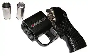The ПБ-4 «ОСА» (EN:PB-4 Osa, Russian for "wasp"), is a family of Russian non-lethal pistols that can be also used as flare gun, flashbang gun, or starting pistol. The system consists of the pistol (2-4 cartridges, laser target pointer, electronic ignition capsule), and various ammunition types.
