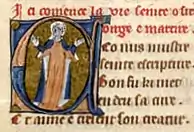 ![]() An illuminated capital commencing the anonymous "La Vie seinte Osith, virge e martire" (Campsey Manuscript, British Library Additional Ms 70513, fol. 134v) | |