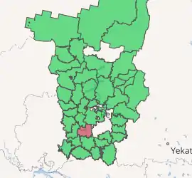 Osinsky District (Russian: Осинский райо́н) is an administrative district (raion) of Perm Krai, Russia; one of the thirty-three in the krai.[1] Municipally, it is incorporated as Osinsky Municipal District.[5] It is located in the south of the krai and borders with Permsky District in the north, Kungursky District in the east, Bardymsky District in the south, Yelovsky District in the southwest, Chastinsky District in the west, and with Okhansky District in the northwest. The area of the district is 2,057 square kilometers (794 sq mi).[2] Its administrative center is the town of Osa.[1] Population: 29,513 (2010 Census);[3] 33,666 (2002 Census);[7] 35,267 (1989 Census).[8] The population of Osa accounts for 71.8% of the district's total population.[3]