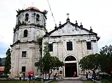 The church is connected to the parish house or convento that still has its original clay-tiled roof. Across the road from the church is the former mortuary chapel with a pediment decorated with a relief of a human skeleton. North of the complex is a small road that leads to the old cemetery.