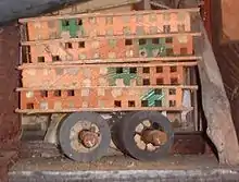 The cavity nest of the mason bee can host Ptinus sexpunctatus, the six-spotted spider beetle, which feeds on other dead or decaying insects.[6] It was discovered in North America in 2004, where it was accidentally introduced alongside Osmia species used for research as pollinators.[7]
