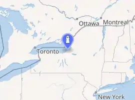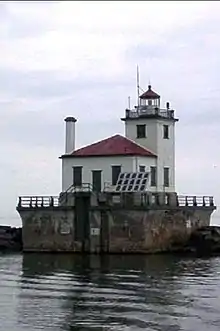 Oswego Harbor West Pierhead Lighthouse is an active aid to navigation located off the coast of Oswego, New York.[2][3] It was built in 1934 to replace an earlier light constructed in 1880. It stands at the end of a 2,000-foot-long (610 m) breakwater at mouth of Oswego River, extending .5 miles (.8 km) out onto Lake Ontario. It is accessible by boat or from land over the abutting breakwater. It is not open to the public. It is owned by the City of Oswego and operated by the United States Coast Guard. It is listed on the National Register of Historic Places.
