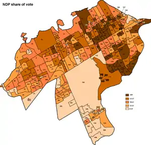 In the 2015 election, the riding had the highest turnout in the country with just over 82% of electors casting a ballot in the election.[6]
