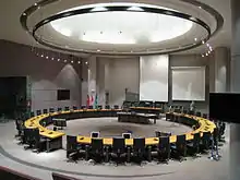The Ottawa City Council (French: Conseil municipal d'Ottawa) is the governing body of the City of Ottawa, Ontario, Canada. It is composed of 23 city councillors and the mayor. The mayor is elected at large, while each of the councillors represent wards throughout the city. Council members are elected to four year terms with the last election being on October 22, 2018. The council meets at Ottawa City Hall in downtown Ottawa. Much of the council's work is done in the standing committees made up sub-groups of councillors. The decisions made in these committees are presented to the full council and voted upon.