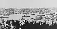 In October 1912, the Balkan League declared war on the Ottomans, a month before the Italo-Turkish War ended. At the time, Mesudiye was moored off Büyükdere, a neighborhood in Constantinople, with the torpedo boats Hamidâbad and Kütahya, stationed as a guard ship. In December, the Ottoman fleet was reorganized, with Mesudiye joining the newly formed Battleship Division, under the command of Ramiz Naman Bey. The division also included Barbaros Hayreddin, Turgut Reis, and Asar-i Tevfik. The ship was moved to Büyükçekmece on 15 November, where she joined the rest of the fleet.[19] Two days later, Mesudiye and Barbaros Hayreddin conducted shore bombardments in support of the Ottoman troops holding the Çatalca Line; the bombardments did not cause particularly significant material damage to the attacking Bulgarians, but it did boost Ottoman morale.[18][20]