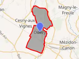 On 1 January 1972, Ouézy and Cesny-aux-Vignes were amalgamated to become the commune of Cesny-aux-Vignes-Ouézy, but on 1 January 2006, Ouézy and Cesny-aux-Vignes were reestablished as two separate communes.[2]