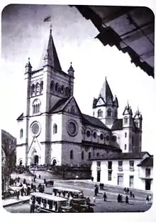 The current building is contemporary in design and replaced the previous Romanesque-Gothic style granite building,[3] which was demolished after a strong earthquake on July 30, 1962 caused it serious damage.[4]
