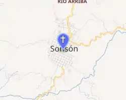 The Our Lady of Chiquinquirá Cathedral, [1] also called Sonsón Cathedral, is a Catholic cathedral under the patronage of the Virgin of Chiquinquirá. The church is situated on the side of the main square (Ruiz Zapata) of the municipality and city of Sonsón, Antioquia, Colombia.[2] It is one of the bishoprics of the Roman Catholic Diocese of Sonsón–Rionegro, together with the co-Cathedral of St. Nicholas the Great, and the Marian shrine in Rionegro.