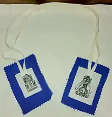 In the United States the National Shrine to Our Lady of Walsingham for the Episcopal Church (part of the Anglican Communion) is located in Grace Church, Sheboygan, Wisconsin, and for the Catholic Church at Saint Bede's Church, Williamsburg, Virginia. The personal ordinariate established for former Anglicans in England and Wales is named for of Our Lady of Walsingham. The cathedral of the Personal Ordinariate of the Chair of St. Peter in Houston, Texas, is named for Our Lady of Walsingham. The Catholic national shrine of Our Lady of Walsingham is a separate chapel that belongs to the parish of St. Bede's Church in Williamsburg, Virginia.[17] Western Rite Antiochian Orthodox parish named for Our Lady of Walsingham is in Mesquite, Texas. There is a blue Anglican devotional scapular known as the Scapular of Our Lady of Walsingham.