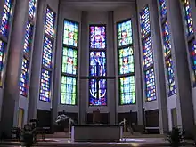 In the cathedral's apse, stained glass windows designed by the Alicante artist Arcadio Blasco stand out. They constitute one of the main attractions of the cathedral.