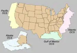 The Outer Continental Shelf (OCS) is a feature of the geography of the United States. The OCS is the part of the internationally recognized continental shelf of the United States which does not fall under the jurisdictions of the individual U.S. states.