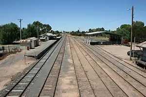 Following Murray Basin Rail Project works, involving the conversion of the Mildura line to standard gauge, the yard was reduced to two through roads and a single dead end siding, in addition to the main running line.[2]