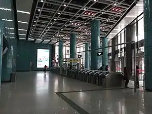 Ouzhuang Station (Chinese: 区庄站) is an interchange station between Line 5[1] and Line 6 on the Guangzhou Metro in the Yuexiu District of Guangzhou. It is located under the junction of East Huanshi Road (环市东路) and Nonglinxia Road (农林下路),[2][3] It opened on 28 December 2009.[4]