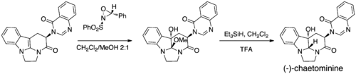 - Malgesini, Beatrice; Forte, Barbara; Borghi, Daniela; Quartieri, Francesca; Gennari, Cesare; Papeo, Gianluca (2009). "A Straightforward Total Synthesis of (−)-Chaetominine". Chem. Eur. J. 15 (32): 7922–7929. doi:10.1002/chem.200900793. PMID 19562787.