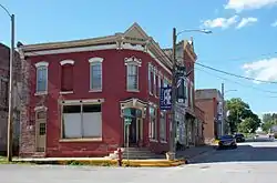 The Oxford Commercial Historic District is a nationally recognized historic district located in Oxford, Iowa, United States. It was listed on the National Register of Historic Places in 1997.[1] At the time of its nomination it consisted of 20 resources, which included 16 contributing buildings and four non-contributing buildings.[2] This district reflects a typical central business district found in a Midwest town. It represents a transitional period from a frontier town to a settled community, and from the horse as the primary means of transportation to the automobile and mechanized farming. Most of the buildings in Oxford's business district were constructed between 1883 and 1917. Some replaced the wood-frame structures from the town's frontier days, while others replaced those destroyed by a major fire that consumed the north side of the district in 1890.[2] They are one to two stories in height, and their exteriors are composed of common brick. While simple in composition, many feature ornate decorative cornices. The Italianate and Romanesque Revival styles dominate.[2]