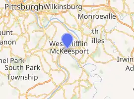 The P&LE McKeesport Bridge is a truss bridge across the Youghiogheny River connecting the east and west banks of the Pittsburgh industrial suburb of McKeesport, Pennsylvania. In 1968, the Pittsburgh & Lake Erie Railroad undertook a major construction project in conjunction with the B&O Railroad to clear tracks from downtown McKeesport. These tracks caused traffic congestion and posed a safety hazard. As a result, both this bridge and the nearby P&LE Liberty Boro Bridge were created to direct rail traffic to the west bank of the river, which featured a less confusing street grid.