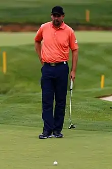 In 2005 having joined the PGA Tour (see below), Harrington played fewer events on the European Tour and experienced his first winless year on the tour since 1999.[11] In 2006 Harrington was once again a winner on the European Tour at the 2006 Alfred Dunhill Links Championship, this was his second links golf win having also won the event in 2002 and was a prelude for his future Open Championship success.[22] Following this Harrington won the 2006 European Tour Order of Merit,[11] coming after a titanic battle with Paul Casey and David Howell, which was won on the last hole of the last event. Sergio García bogeyed the 72nd hole in the season ending Volvo Masters to give Harrington a share of second place which earned him enough money to leapfrog Paul Casey to 1st place on the Order of Merit.[23]