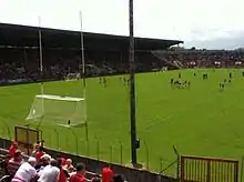 Sports meetings were frequently held on the area now occupied by Páirc Uí Chaoimh even before the establishment of the Gaelic Athletic Association.[6] By the late 1890s the Cork County Board were allowed by the Cork Agricultural Company, the leaseholders of the land, to enclose a portion of the site for the playing of Gaelic Games. The county board built its own stadium on the land in 1898.[7] The Cork Athletic Grounds opened in 1904[8] and hosted All-Ireland finals, Munster finals and National League games.[9] These grounds were close to what is now the CAB Ford garage on the Monahan Road.
