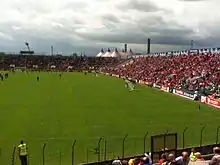 The 1970s oil shocks increased interest rates and the Cork County Board was unable to repay the loan on stadium's building cost.[16] Local promoter Oliver Barry instigated the Siamsa Cois Laoi (Irish for '"Fun by the [River] Lee"'), a weekend festival of country, folk, and Irish traditional music held annually in the stadium from 1977 to 1987.[17][18] Opposition from GAA traditionalists was overcome by the need for the organisation to clear mounting debts.[18][16] Each Siamsa programme featured international stars supported by Irish acts. Headliners included Glen Campbell (1979[19] and 1983[20]), Don McLean (1979[21] and 1984[22]), Joan Baez (1980),[23] Kate & Anna McGarrigle,[17] Leo Sayer (1984),[24] Loudon Wainwright III (1985),[25] Kris Kristofferson (1985),[26] John Denver (1986),[27] Status Quo,[17] and The Pogues (1987).[17] Support included acts managed by Barry like the Wolfe Tones, Stockton's Wing, and Bagatelle,[18] and others including the Dubliners and Christy Moore.[17]