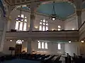 Built to accommodate 1,700 people, it was handled by the Pest Jewish Community. On April 17, 1926, the Equality Magazine presented the interior of the new synagogue to a wider audience: “In addition to the rich and yet decent gold plating, the three traditional Jewish colors are rich in architectonic painting: blue, white, yellow. The style of painting is considered novel: curtain drapes, often used in medieval painting, have a beautiful effect on the apse of the sanctuary with the motifs on the walls; on the parapet of the female gallery, the outlined fields are scattered with maccabe lilies, and the blue pillar flanking the shrine apse represents two columns of the Solomon's Temple, traditionally Hebrew. In the great temple arc, the enormous slogan of Jewish ethics shines: "Love your neighbor as yourself" in Hebrew and Hungarian. All the motifs of the painting were designed and drawn by the architect Lipót Baumhorn in the smallest detail.”
