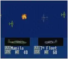 Taking control of the naval forces of both nations, each side tries to outsmart each other. Naval forces can be equipped with new technology when it becomes available. They can handle anti-aircraft weapons, radar, aiming devices, decryption units, incendiary weapons, flamethrowers, and missile weapons. Whenever the Americans are about to win the game or they score some victories, the game may have Adolf Hitler say some nasty words about the Allied Forces.[5] Battles between aircraft, ships, and infantrymen are shown as the battle for a certain region is resolved. Ships can intercept each other on the world map and engage in an impromptu combat session. However, with the perpetual victories at the conference along with the fighting power of the units, national power for the Japanese has been enhanced. A lot of units and a dedicated infrastructure could exceed the national power of the United States a few years after starting a war against them, causing a collapse in the game balance.