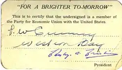 P. W. Crummey was a member of the Responsible Government League, which was formed in February 1947 by Major Peter Cashin to oppose Canadian Confederation. Seeking alternative options for Newfoundland's future, Crummey and several other delegates split away to form the Party for Economic Union with the United States.[6]