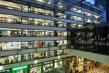 The original site area was around 6,000 square meters.[7] After the revitalization, the total floor areas became 18,000 square meters. Because the location is near galleries and boutiques along Hollywood Road and SoHo, it was successful in attracting around 100 design galleries, shops, bookstores and office units. Moreover, there are 15 ‘pop- up’ units for design exhibitions and outlets. The 1,000-square-meter central courtyard has held events like "Panda-mania" in 2014, with 1,600 paper versions of the endangered animal. To promote the historic background of PMQ, a tunnel allows visitors to go through the foundation of the former Victoria College.