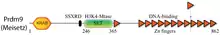 PRDM9 has multiple domains including KRAB domain, SSXRD, PR/SET domain (H3K4 & H3K36 trimethyltransferase), and an array of C2H2 Zinc Finger domains (DNA binding).[9]