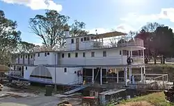 The PS Ruby, also known as the Paddle Steamer Ruby is the flagship of the historic port of Wentworth, New South Wales at the junction of the Murray and Darling Rivers. She is a composite hull paddle steamer that features a 1926 Robey & Co 20 nominal horsepower portable steam engine. Between 1996 and 2007 she was restored to her early 20th-century appearance.