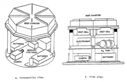 The device was designed to conduct three experiments, two of which failed. The first failed one was intended to test seed growth in microgravity in an unconventional way—by germinating seeds on a spinning disc. The degree of artificial gravity on the spinning wheel is highest (0.25 g or 2.5 m/s²) at its rim and lowest at its center. Using this fact, the influence of different levels of gravity on seed germination could be determined by placing seeds at different radial locations on the disk. At the end of the mission, the growth was to be arrested. After return the orientation of the roots were to be used to determine the threshold of gravity at which a plant could determine which way was down. A second failed experiment on fluid dynamics was intended to measure the bulk oscillations of a drop of mercury immersed in a clear liquid. A short circuit prevented the seed and mercury drop experiments from functioning.[1]