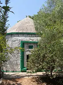 The tomb is a square building, with a hexagonal roof. Flat stones are used in the building. The entrance is via a door to northeast.[3] Like most other tombs, an unofficial cemetery had been established around the tomb. There is also a wish tree just to the north of the tomb