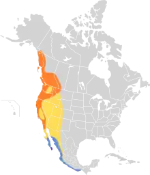 The Pacific-slope flycatcher inhabits either coniferous or deciduous forests. In its range it enters mixed woods, Douglas fir forests, redwood forests, and many other wooded environments including riparian woodlands. As of November 2019, there has been one case of these West Coast birds showing up on the East Coast, in Palmyra, New Jersey.[3]