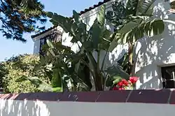 The land that became Pacific Palisades was originally located within the boundaries of Rancho Boca de Santa Monica, granted by the governor of California during the Mexican period to Francisco Marquez and Ysidro Reyes in 1839.[15] The Ysidro Reyes Adobe was the first adobe home ever built in Santa Monica Canyon, erected in the year 1838 on land now known as Pampas Ricas Blvd, located in Pacific Palisades.[16] Sketches of adobe dwelling exist in the collection of the UCLA Library.[17][18] A memorial plaque sits in a boulder on Pampas Ricas Blvd commemorating the adobe house, dedicated in the 1950s.[19] Ysidro Reyes died in 1863. Reyes left his portion of Rancho Boca de Santa Monica to his widow, Maria Antonia Villa, who sold it to developer and railroad magnate Robert Symington Baker in 1875.[20]