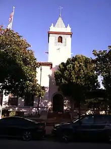 1929 would prove to be a pivotal year in the history of the Palisades,[26] and by that time the town consisted of only about 365 homes and about 1,000 residents who mostly resided in the so-called "Alphabet Streets" neighborhood, although residential construction was now expanding into what would later become the Castellammare, Huntington and Paseo Miramar neighborhoods.[27] On August 18 of that year, the cornerstone was laid for the foundation of the Methodist Episcopal Church on Via de la Paz, which at that time was the community's only church. Directly across the street, planning was underway for the town's first permanent school building which would later become known as "Palisades Elementary", which was dedicated on June 12, 1931.[26]