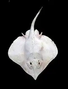 The Pacific white skate (Bathyraja spinosissima) is a species of skate in the family Arhynchobatidae. It is one of the deepest-living of all skates, occurring at a depth of 800 to 2,938 m on the continental slope. It is native to the southeast Pacific Ocean from the Galapagos Islands to off Waldport, Oregon; an egg case and embryo has been collected from the Farallon Islands off San Francisco. Reports of it from the Sea of Okhotsk may represent a different species. Its species name, spinosissima, comes from the Latin spinosus meaning "thorny", referring to its covering of dermal denticles.[2]