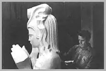 By November 1938, when Life photographer Alfred Eisenstaedt was capturing images to promote the event, Pacifica was ready for his camera. The magazine carried the image of this, Stackpole's most monumental work, "a peaceful, contemplative, almost prayer-like female figure".[5]