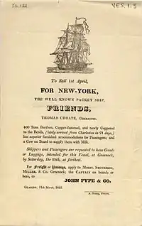 In 1818, ships of the Black Ball line began regularly scheduled trips between Britain and the United States. These "packet ships" (named for their delivery of mail "packets") were infamous for keeping to their disciplined schedules. This often involved harsh treatment of seamen and earned the ships the nickname "bloodboat".