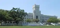 Padgett-Thomas Barracks is the dominant building on the campus of The Citadel in Charleston, South Carolina. Constructed from 1920 to 1922 as the first building on The Citadel's new site but demolished and replaced from 2000 to 2004, the barracks serves as the living quarters for up to 560 members of the South Carolina Corps of Cadets. The eight story tower which distinguishes it from the other four, smaller, barracks on Campus of The Citadel is also styled as a brand mark of the military college.[1][2][3][4]