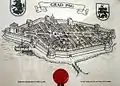 In 1443 the new town was founded and built according to new principles of town-planning. The longitudinal and the transversal streets, the latter known as Vela ulica, intersect at a right angle, forming in this way a rectangular square with the Collegiate Church, the Duke's Palace and the unfinished Bishop's Palace, which, as well as the town walls, were built by the famous mason and sculptor Giorgio da Sebenico.