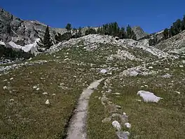 The Paintbrush Canyon Trail is a 9.1-mile (14.6 km) long hiking trail in Grand Teton National Park in the U.S. state of Wyoming.[1] Access to the Paintbrush Canyon Trail is from the String Lake trailhead.[2] From there the trail follows the west shore of String Lake and is also known as the String Lake Trail. The Paintbrush Canyon Trail then enters Paintbrush Canyon and becomes steeper and then splits with one trail heading to Holly Lake and the other heading south then west. The trails merge west of Holly Lake and it is a steady altitude gain the last 3.9 miles (6.3 km) to Paintbrush Divide. The east approach to Paintbrush Divide is steep and may require the use of an ice axe through July.[3] There are two camping zones within Paintbrush Canyon and one designated campsite at Holly Lake which are available with a permit.[4] There is a popular loop trail which includes the Paintbrush Canyon Trail, Lake Solitude Trail and Cascade Canyon Trail which spans a distance of 19 mi (31 km) and has a total elevation gain of 4,900 ft (1,500 m).[3]