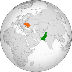 Pakistan-Ukraine relations are foreign relations between Pakistan and Ukraine. Pakistan recognized Ukraine's independence in 1991. Diplomatic relations between both countries were established 1992. However, Pakistan and Ukraine relations were first established before the Ukrainian independence from Soviet Union. Since 2018, Pakistan-Ukraine relations moving from Conventional Diplomacy to Public Diplomacy.[1] In recent years, Pakistan had developed close economic and military ties with Ukraine. Pakistan also supports Ukraine's sovereignty and territorial integrity.[2]