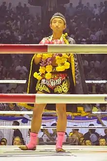 Pakorn P.K. Saenchai Muaythaigym is a Thai Muay Thai kickboxer, originally from the Phra Samut Chedi District,[1] but now fighting out of Bangkok, Thailand. Pakorn is a former 135 lbs. Lumpinee Stadium champion[2] and 65 kg Yokkao champion.[3] He is the former 115 lbs Rajadamnern Stadium champion[4] and is currently ranked nr. 1 at 135bs.[5] He holds wins over fighters such as Sagetdao Petpayathai, Jomthong Chuwattana, Nong-O Kaiyanghadaogym, Pornsanae Sitmonchai and Kongsak Sitboonmee.