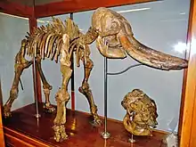 Palaeoloxodon mnaidriensis or Elephas mnaidriensis is an extinct species of elephant from Malta and Sicily closely related to the modern Asian elephant,[2] or possibly to the modern African forest elephant.[3] This elephant is a separate species with respect to the European mainland straight-tusked elephant (Palaeoloxodon antiquus) and not just a smaller insular form.[2] P. mnaidriensis has nearly 90% body reduction compared to the ancestral form with an estimated shoulder height of about 1.8 metres (5.9 ft) and a mean body weight of about 1,100 kilograms (2,400 lb).[2] Another estimate gives a shoulder height of 2 m (6.6 ft) and a weight of 1.7 t (1.9 short tons).[4]