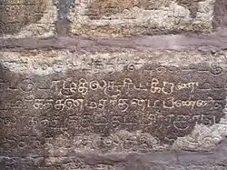 Palani is home to one of the most sacred shrines of the Lord Muruga, as worshiped in the Hindu sect of Kaumaram. The Thandayudhapani Temple dedicated to Lord Murugan "Palani Andavar", and regarded one of his Arupadai Veedu (Six Battle Camps), is situated here.[6] The temple is situated atop a hill known as Sivagiri. The Garbagriham is surmounted by a gold gopuram and the walls of the Garbagriham have numerous stone inscriptions describing offerings made by devotees to the temple. Steps are hewn into the rock, besides a wide path meant for the ascent of elephants, up the hill. In addition, a winch pulled railway with three tracks and a rope way are operational. A temple is dedicated to Murugan near the foot of the hill by the name of Thiru Avinan kudi which actually forms a part of the six abodes of Muruga (Arupadaiveedu). It is also called as Kulandai Velayudhaswami Thirukkovil.[7]