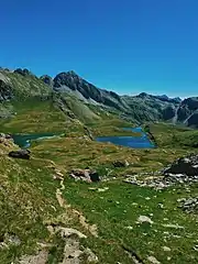 The Palasinaz Lakes (Laghi Palasinaz in Italian) are a group of lakes located in the Italian Alps, in the Aosta Valley region of northern Italy. They are of glacial origin and are situated in the southern foothills of the Monte Rosa group and are accessible from the villages of Brusson and Champoluc. The group is composed of the following lakes: the Lac Long, the Lago Pocia, the Lac du Couloir, the Lac Vert, and, the Lago della Battaglia.[1]