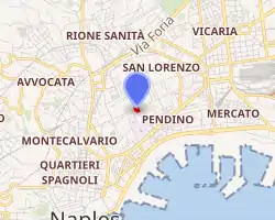 The palace was first built in the 15th century and restored soon after. A plaque, dated 1466, recalled work by the owner Diomede Carafa. It is said he engaged the architect Masuccio Secondo or Angelo Aniello Fiore in this work. The latter worked for the family tombs in the church of San Domenico. The palace passed from the son of Diomede, to the Counts of Maddaloni, and then the Carafa family of Columbrano.[1] After the death of the Duchess Faustina Pignatelli, wife of Francesco Carafa di Columbrano, the palace fell into disrepair, until acquired in 1815 by Francesco Santangelo, a wealthy lawyer, and converted into a museum displaying archeologic collections.[2]