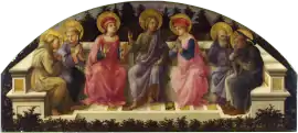 Other decorations of the palazzo included two lunettes by Filippo Lippi, depicting Seven Saints and the Annunciation, both now at the National Gallery, London.
